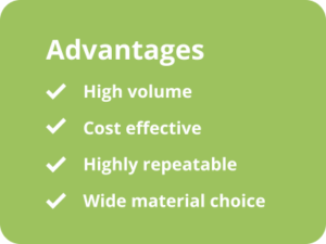 This technology is perfect for large production because the cost per part is so low, making this method of plastic moulding very cost-efficient.